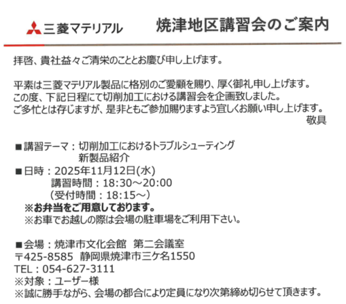 【三菱マテリアル】焼津地区 講習会のご案内