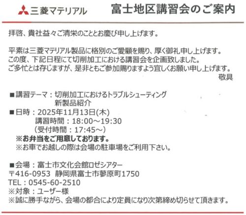 【三菱マテリアル】富士地区 講習会のご案内