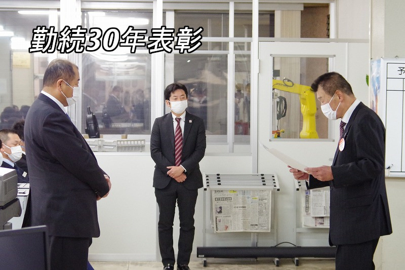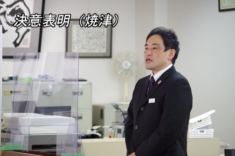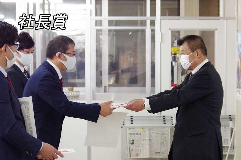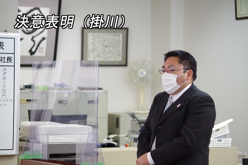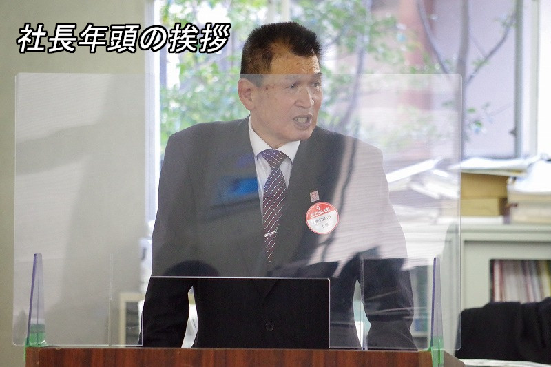 例年ですと祝賀式のあと、グループ会社(㈱ナカジマテック)と合同で祝賀パーティーを行うのですが、今年は新型コロナウイルス感染症拡大の為、1部の新年祝賀式のみで、会場も密を避け、本社事務所で間隔を開けての開催となりました。