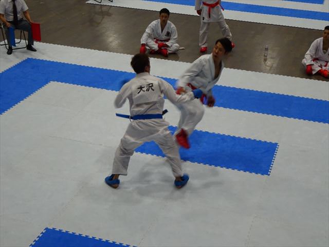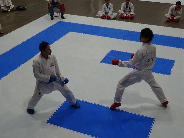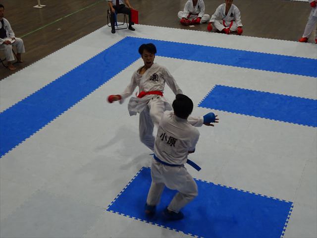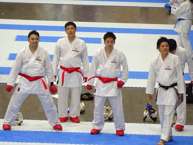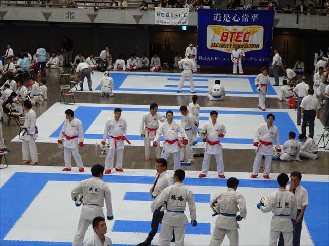 団体戦組手では、1回戦・2回戦と順調に勝ち進み、準々決勝で昨年の全日本空手道選手権の準優勝チームと対戦、惜しくも敗れてしまいましたが、ベスト8で11月に行われる全日本実業団空手道選手権の出場権を獲得しました。